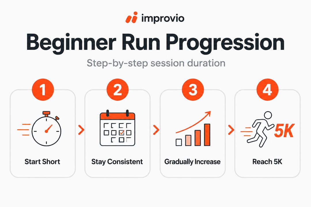 Keep your weekly increases at 10% or less. Rapid spikes above 10% per session significantly elevate injury risk for new runners. Slow and steady progression is the safest path.