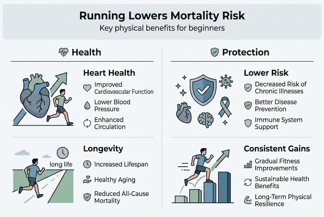 Here's a number that might surprise you: runners live 3 years longer on average, and even running just 5 to 10 minutes per day at a slow pace lowers mortality risk significantly. You don't need to log marathon miles to get there.