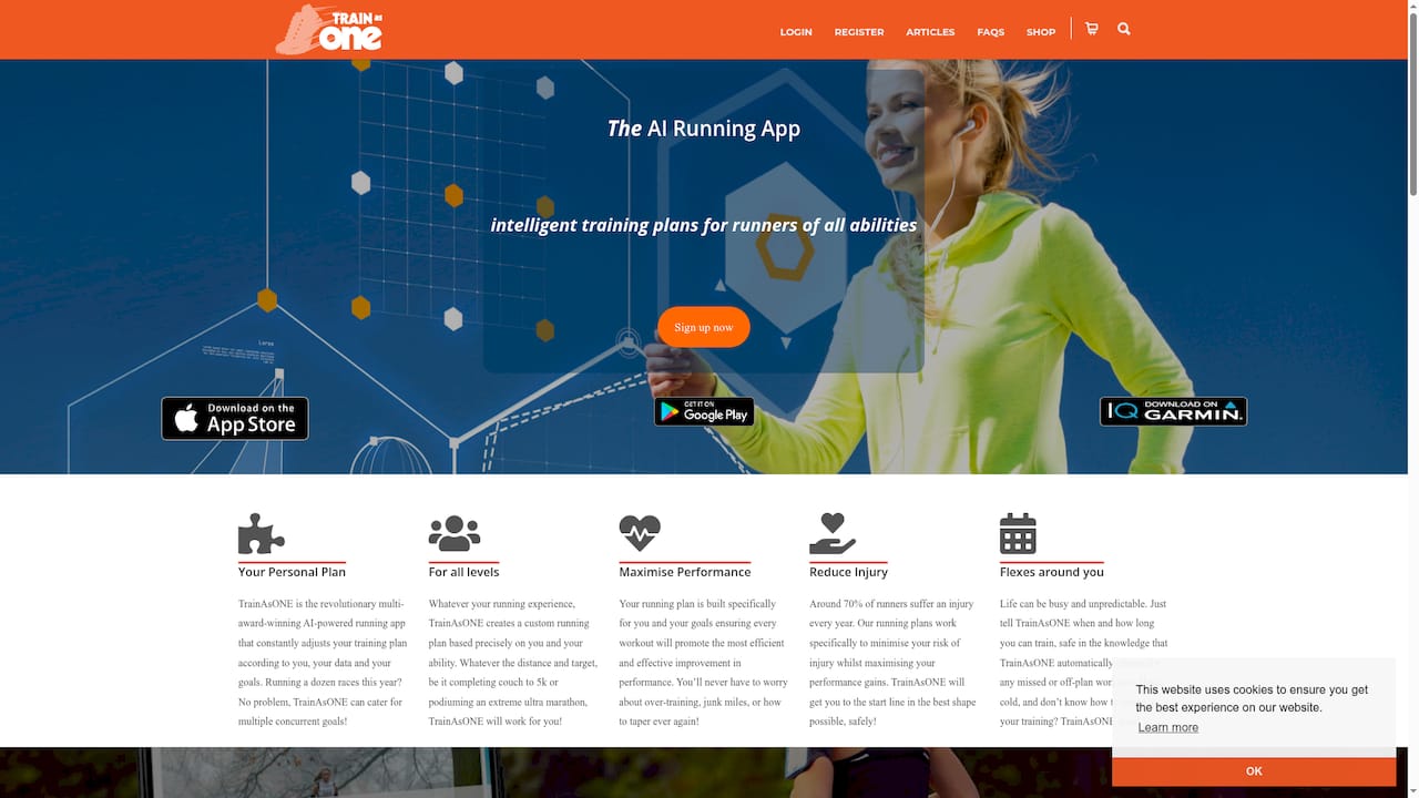 TrainAsONE delivers AI driven personalized training plans that adapt in real time based on your input and performance. It supports multiple goals simultaneously, emphasizes injury prevention, offers weather and elevation workout adjustments on the paid plan, and connects with Garmin Strava and Fitbit.
